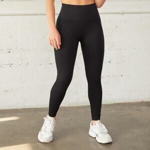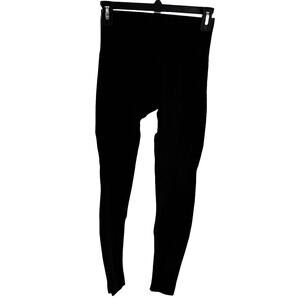 Set Active Sculptflex seamless leggings in black onyx. Our highest compression, seamless, and sculpting fabric. High rise. Seamless with ribbing detail down the sides. Designed to be 7/8 length. SET logo on back of one ankle. Pulls on. Micro fiber nylon / spandex. Machine wash. In preowned condition.