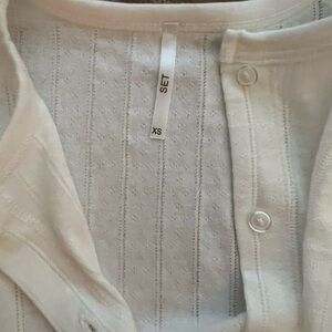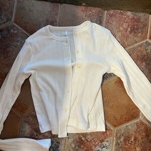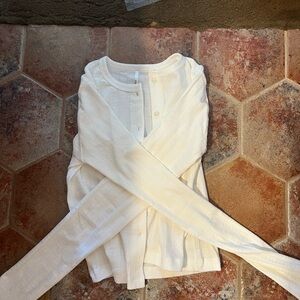 Set Active White cardigan set. Comes with cardigan top and mini skirt. Brand new, unworn, limited edition and sold out online. Subtle white color, super soft material. Size: xs, just didnt fit me.