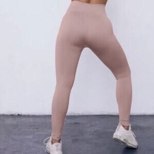 Set Active Dusty Rose Ribbed Pink Workout Leggings Womens Size Small