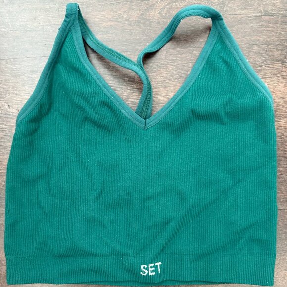 Set Active Green Cropped Ribbed Tank