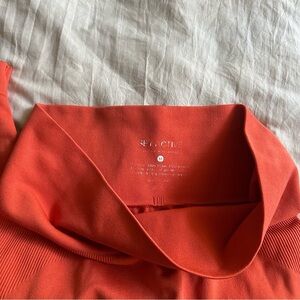 Set Active top and bottom set in orange. This set sucks you in lol Both in great condtion. Top fits like a small/medium. I wear medium (36c) and this fits a bit snug.