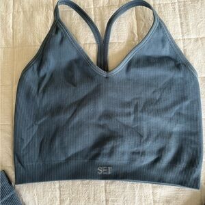 Set Active Sculptflex set. Cropped tank and leggings set. Blue/grey color. Good condition, some slight piling/pulls on the top and back of the leggings. Both size small.