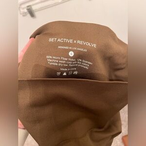 Size Small Set Active Seamless Legging in brown.