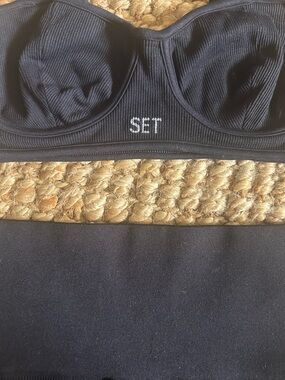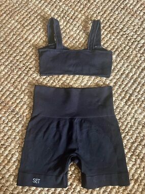 Ribbed black material with bra top and shorts
