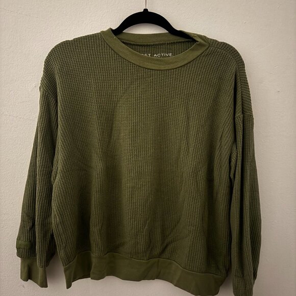 Set Active Waffle Knit Long Sleeve - Olive Green - Sz Small (Oversized Fit)