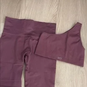 Stylish and comfortable one-shoulder leggings set in a beautiful washed raspberry color. Perfect for active days and casual outings. In perfect condition