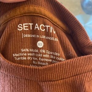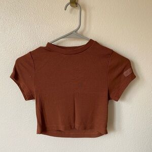 Set Active Women’s Ribbed Baby Tee Size XS in Brown Athleisure Shirt Loungewear in great condition!