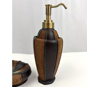 Set Bathroom Lotion Dispenser and Soap Holder Black Brown Home Decor