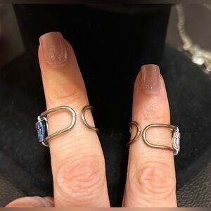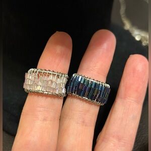 Set Beaded Adjustable Rings. White and Blue/Purple iridescent Beaded Rings. Might be a missing bead on white ring. In good condition. See pictures for details.