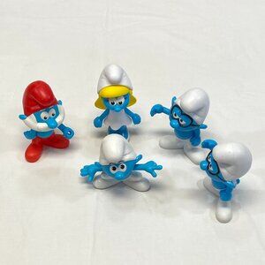 Lot of Five 2016 Burger King "The Lost Village Smurf" 5” Plastic Action Figures. Four unique characters, two Brainy Smurfs. Made of durable rigid plastic with bright colors and classic Smurf charm. Featuring lever controlled moving arms, this fun collectible brings your favorite characters to life. Characters are blue with white clothing, Smurfette boasts trademark yellow hair. Papa Smurf is dressed in red. Whether you’re a Smurfs fan, toy collector, or just love vintage fast-food exclusives, this set is a must-have. Perfect for display or completing your Lost Village collection.