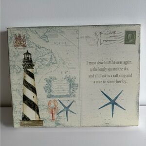 Set Coastal Postcard Style Shabby Chic Beachy Wooden Pictures (2)
