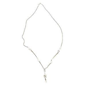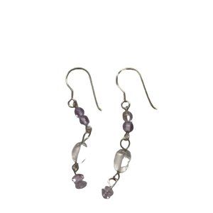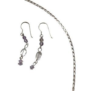 Set Delicate Silvertone 18" Necklace and 1.5" Drop Hook Earrings Orchid Beads