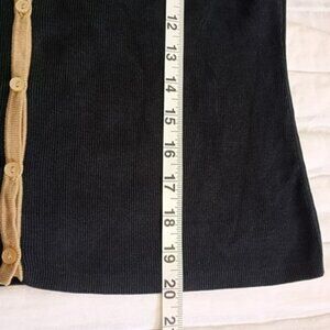 Cardigan shows minor wear on neckline trim. Sweater top to bottom = 23 inches. Cardigan top to bottom = 22 inches.