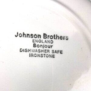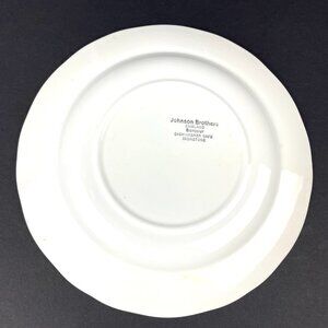 Elevate your dining experience with the Johnson Brothers set of 8 dinner plates, each measuring a generous 9 3/4 inches. Crafted from durable ironstone, these plates feature a timeless design adorned with delicate floral sprigs that add a touch of elegance to any table setting.Proudly made in England during the 1980s, this vintage collection reflects a commitment to quality and traditional craftsmanship. The multicolor palette is versatile enough to complement a range of decor styles, making these plates a perfect choice for both everyday use and special occasions.One of the plates has a line from friction during transportation ( see photo)