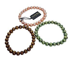 Set OF 3 Honora Freshwater Pearl Stretch Bracelets Brown, Green And Peach (5956)