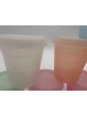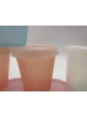 Miniature 2-ounce storage containers originally designed for spices, condiments, or travel-sized liquids.