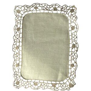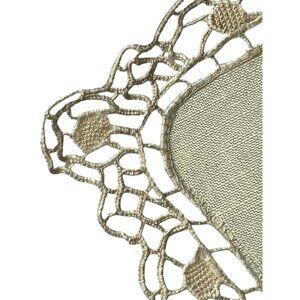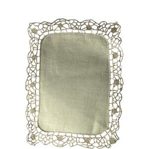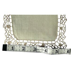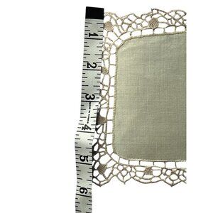 Set Of 10 Pale Yellow Linen & Crochet Doilies 7" X 5.5" Table Decor Wedding