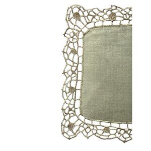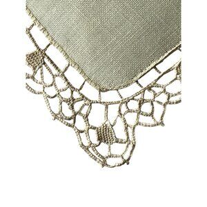 Elevate table settings with these linen and crochet doilies. The pale yellow tone and intricate design add a refined touch to classic or modern decor.
