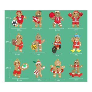 Set Of 12 Gingerbread Man Mini Ornaments Sports Theme Plastic Mini Tree Holiday
