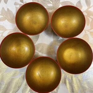5 bowls 3.5” (2 bowls are cracked … see pictures…but if you do not touch them and use them only for decoration, these cracks are practically invisible)