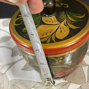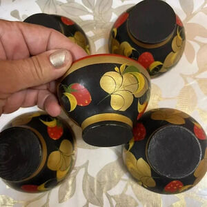 Set Of 13+Vintage Russian (USSR) Khokhloma Hand Painted Wooden Jars Bowls Plate