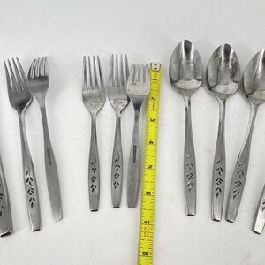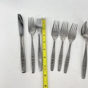 1 dinner knife 2 dinner forks 3 salad forks 5 soup spoons 4 teaspoons Great condition.