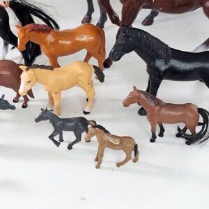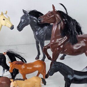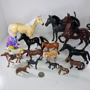 This set includes a variety of plastic toy horses and unicorns in different sizes and colors, offering diverse options for imaginative play.