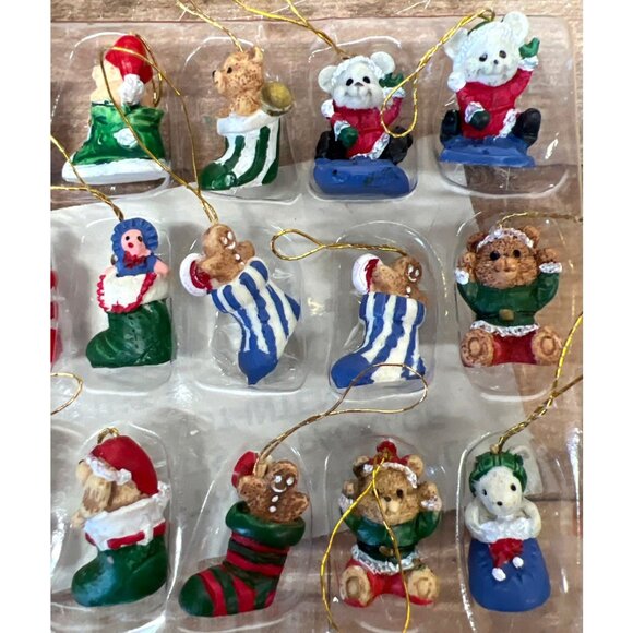 This set of 18 Stocking Critters Ornaments offers a delightful touch to holiday decor. Each ornament is intricately crafted from hand-painted polystone, showcasing detailed designs of various critters in festive stockings. These miniature treasures are ideal for enhancing the charm of a Christmas tree or holiday display, adding a whimsical and festive flair.