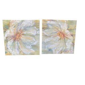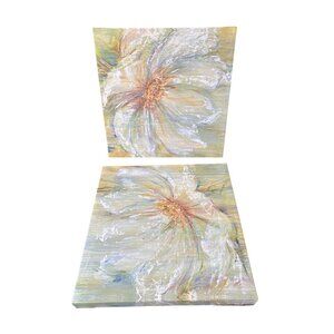 Set Of 2 Abstract Floral Canvas Paintings 16" Square Pastel Hues & Textured
