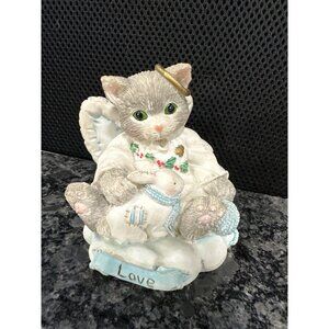 Set Of 2 Angel Cat Figurines With Halo - "Love" & "Joy" -Calico Kittens