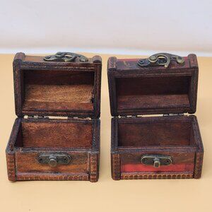 Set Of 2 Antique Style Mini Wooden Treasure Chest Boxes With Latch