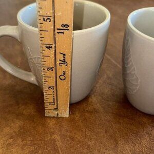 Set Of 2 Beige Ceramic Leaf Embossed Coffee Mugs Made In China