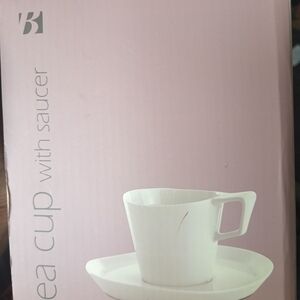 Set Of 2 Berghoff White Tea Coffee Cup and Saucer Set. Enjoy your favorite beverage with the elegant coffee cup and saucer set. The sleek white design adds a touch of sophistication to your kitchen.