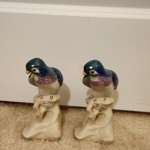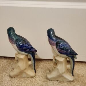 Set Of 2 Blue Bird Figurines Hand Painted 6"