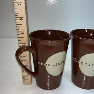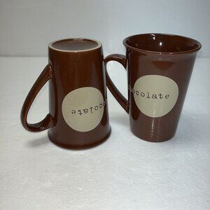 This set of two brown ceramic mugs features a playful chocolate-themed design, making it a tasteful addition to any kitchen or office setting. Each mug stands approximately 5 inches tall, providing ample space for your favorite hot beverages.