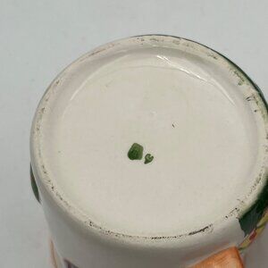 Small paint chip on base of one mug, no cracks. Each mug height = 3.5 inches, diameter = 3 inches.