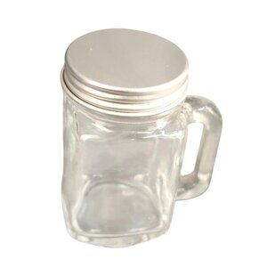 These glass mini mason jar mugs with handles and silver screw lids are designed for versatile use, offering both functionality and aesthetic appeal.