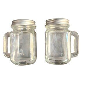 Set Of 2 Clear Glass Mini Mason Jar Mugs With Silver Screw Lids