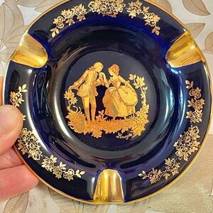Set Of 2 Cobalt & Gold Limoges France Miniature Pitchers And Ashtray