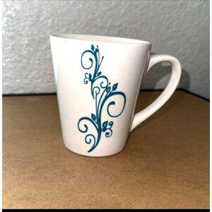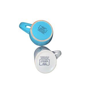 Set Of 2 Coffee & Tea Mugs With Blue Floral & Logo Designs