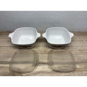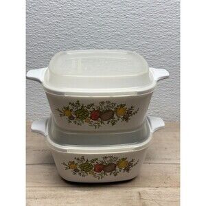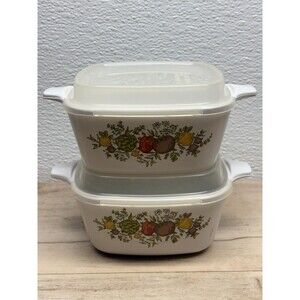 Set Of 2 Corning Ware Spice Of Life Casserole Dish 2 3/4 Cup With Plastic Lids.Very good condition,no cracks,no chips.One of the casserole have black mark on one of the sides.Please see all pictures for details.