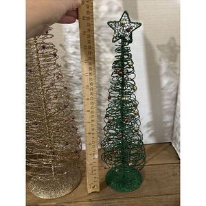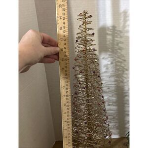 Set Of 2 Crate & Barrel Beaded Wire Glitter Christmas Trees 20” & 15” Tall