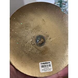 Add some holiday cheer to your home with this set of three Crate and Barrel Christmas trees. The trees are adorned with beautiful beaded wire accents in a gold and green color scheme, perfect for any Christmas occasion. The trees stand at 20 inches and 15 inches tall and are made with mixed materials and wire.