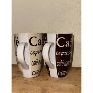 Set Of 2 Espresso & Coffee Themed Ceramic Mugs