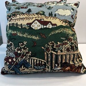 Set Of 2 Fall Autumn Thanksgiving Tapestry Throw Accent Pillows Scarecrow Apple