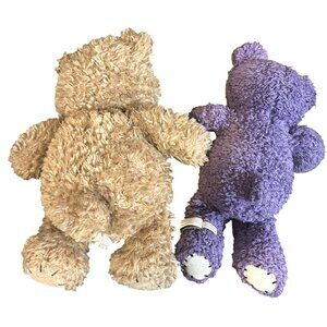 Set Of 2 First & Main Teddy Bears Plush Stuffed Animals Brown 12" & Purple 10" S