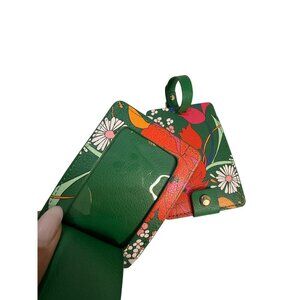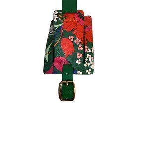 Set Of 2 Floral Luggage Tags With Green Strap & Gold Buckle