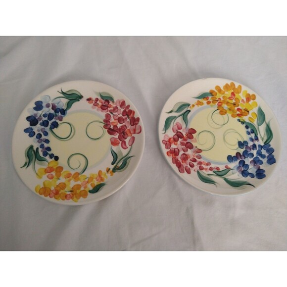 Set Of 2 Gail Pittman 7 1/2" Garden View Salad Dessert Plates Hand Painted 1999