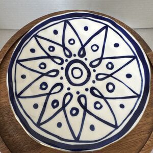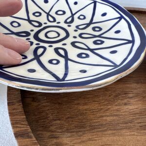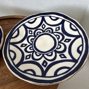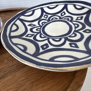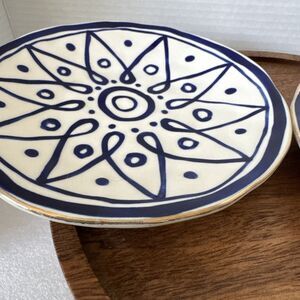 Set Of 2 Hand Painted 6.25” Blue And White Plate/Trinket Dishes Gold Rims