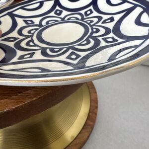 2 stunningly pretty, and visually striking cobalt, blue and white with gold rim 6.25 inch trinket dishes/bread plates. Hand painted designs give them an organic shape and feel. Gold rim is worn thin in certain places, but there are no chips or cracks. Very lovely pair of dishes. Please see photos for details.